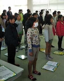 1年生が、明日の参観日での学習発表会に向けて練習をしていました。