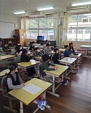 6年生:「恩返しプロジェクト」として、おうちの人に手紙を書いて発表していました。手紙をおうちの人に渡して・・・感動的でした。クラスのみんなで、歌のプレゼントもしていました。