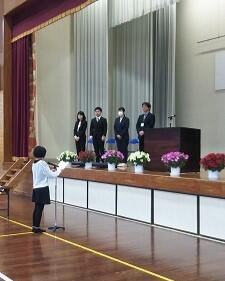 その後、1年生と5年生の代表児童が、1年間を振り返っての作文発表をしました。自分を振り返り、新年度への目標をもった、とてもすばらしい発表でした。