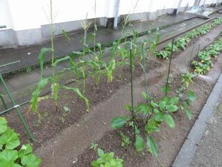 2年生は、生活科で野菜の苗を植えています。サツマイモ、ミニトマト、キュウリ、ピーマン、枝豆、とうがらし、ナスを育てていますが、6月の雨の多さに、少し生長の遅れを心配しています。
