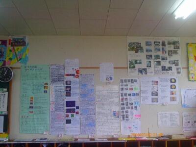 今、高学年の教室の掲示板には、夏休みの自由研究が掲示されています。画像は、5年1組の自由研究です。熱中症について調べたものや、カブトエビについて研究したものなど、自分のテーマに関してよくまとめられています。読んでみるといろいろなことが分かっておもしろいです。(5年1組 図書・広報委員会児童)