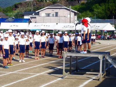 25日に予行練習を実施しました。1年は、開会式における1年生の言葉、徒競走、団技を実際に行いました。子どもたちは、初めての小学校の運動会の雰囲気を味わい、とても楽しそうでした。いよいよ4日が本番です。練習の通りに力を発揮することができるよう、今週でしっかりと仕上げを行っていきます。