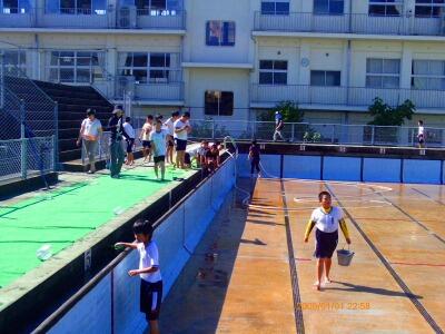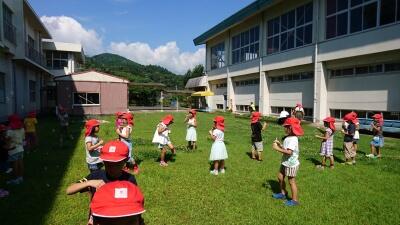 水かけやじゃんけんゲーム、歩行競争などを行い、笑顔いっぱい