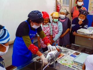 漬け汁は、ボランティアの先生が秘伝の味で作ってくださいました。2月21日に試食予定です。子どもたちは、その日を指折り楽しみにしています。いいにおいをかいでは、