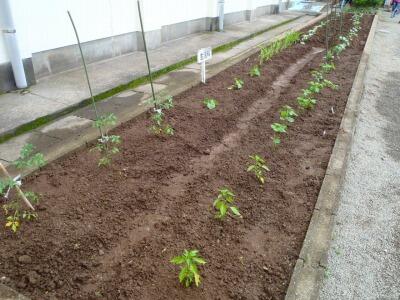 太陽の光を浴びて、おいしい元気な野菜に育ってほしいと2年生みんなで願っています。