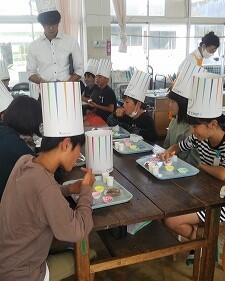 まずは、コック帽をかぶって授業開始。コック帽はフランスから来た物だそうです。