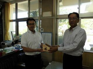 本日、南郷地区林業研究グループ連絡協議会様より、1年生全員に、ペン立ての寄贈がありました。日南市で育った杉を使い、杉の木のマークの焼き印がついた一つ一つ手作りのペン立てです。どうもありがとうございました。