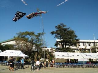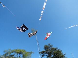 【青空にたなびく大漁旗も子ども達を応援しています】