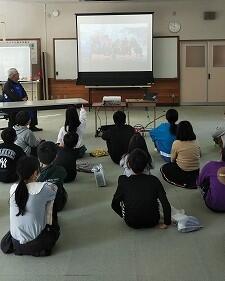 最初に、かつお漁についてお話をしていただきました。「かつお一本釣りは、魚と人間の闘いだ。」という言葉がとても心に残りました。釣る側の工夫や苦労をお話してくださいました。その後、子どもたちの質問に答えてくださいました。