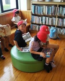 【2年生:ハートフルの芝がぬかっていたため、学校で遊んでからハートフルの図書館に行きました。】