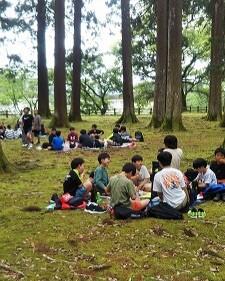 【6年生:JRで飫肥へ。昼食は飫肥城旧本丸跡でとりました。】