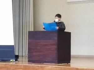 式のあと、生徒指導担当の先生から、生活の中で3学期にがんばってほしいことと気を付けてほしいことの話がありました。話の内容をしっかりと守って、3学期も元気に安全に過ごしてほしいです。