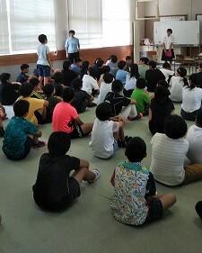 登校日に合わせて、本校の卒業生で五ヶ瀬中等学校の生徒が、5・6年生に五ヶ瀬中等学校について話をしてくれました。学校の様子をプレゼンを使って分かりやすく話をしてくれました。「毎日が楽しい。」「自分で決めて入った学校です。自分の選択は正しかった。」という内容の言葉がとても頼もしかったです。5・6年生にとっても、自分の進路や目標について考えるよい機会になったと思います。