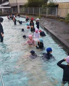 水慣れをしました。走ったり、顔を水につけらり、楽しそうに活動していました。