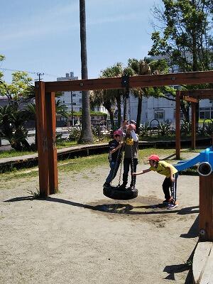 市役所前の中央公園でお弁当を食べた後、遊んでいました。