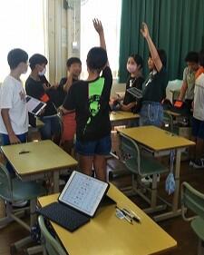 6年生が修学旅行の話合いをしていました。先生がタブレットでバスや食事の席、活動の班のメンバーをタブレットで送り、子どもたちは各自で確認しました。その後、席の変更や班の班長決め等、必要なところは話合いで決めていました。タブレットを使ったデジタルと、話し合うアナログ、それを組み合わせたハイブリッドです。