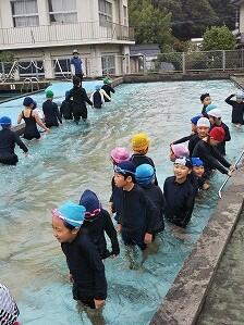 みんなでプールの外側を歩いて、「流れるプール」をつくりました。