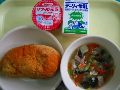 グルメレポート:黄金パンが、きなこ味で、サクサクしていておいしかったです。(2年1組児童 A)