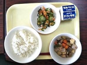 麦ごはん、筑前煮、昆布の酢の物、牛乳