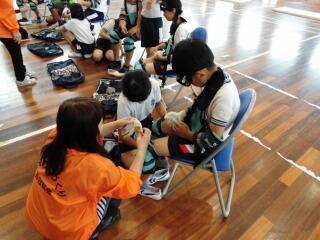 日ごとに気温が高くなるこの頃ですが、水泳をはじめ様々な運動場面でのいざという時の対応のために、PTA保体部の方々と職員で救急法講習会を行いました。