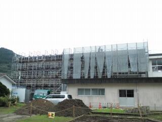今月から南校舎の外壁工事が本格的に始まりました。ご存じのとおり、1階は家庭科室、2階は図書室があるこの校舎は本校で最も古い校舎です。工事事務所が設置され、足場も組まれ、今後計画的に作業が進められます。今のところ、年内いっぱい工事が進む予定です。