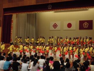 しっとりとした「目井津子守舟歌」に始まり、「目井津竹踊り」では勇ましいかけ声が会場全体に響き、観衆の心をつかみました。発表が終わると、会場から大きな拍手をいただいて子ども達も嬉しそうでした。