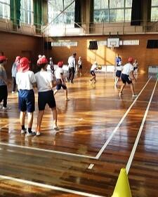 6校時に「6年生との交流会」がありました。これは、6年生と先生方(19名)が一緒にドッジボールをするイベントでした。