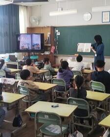 6年生が、油津小学校と外国語のオンライン交流を行いました。「My Dream(私の夢)」をお互いに発表しました。