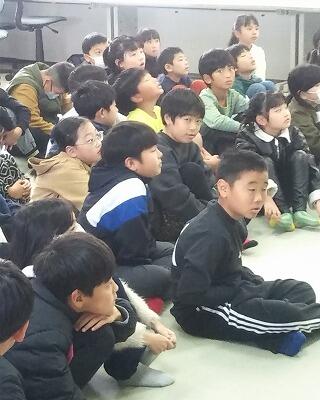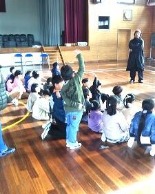 今年最後の読み聞かせがありました。「ぐりとぐら」の方が5名来られて、1~3年生に絵本を読んでくださいました。