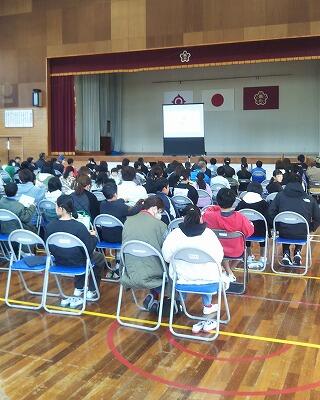 次に、中学校の生活と部活動について、担当の先生と生徒会長・副会長から説明がありました。