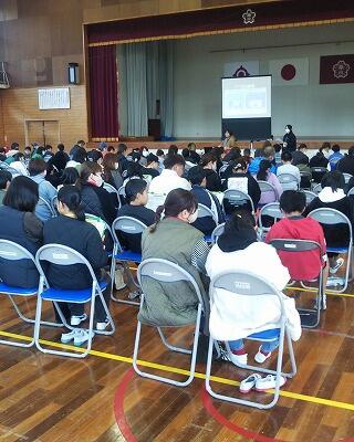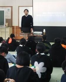 10日(火)に6年生が、「よのなか先生」のお話を聞きました。今回は、愛泉会日南病院の理事長様に来ていただきました。