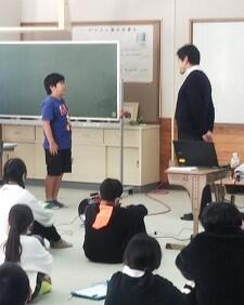夢をもつこと、様々な経験が夢と繋がること等、未来に向かう子どもたちにとって指針となるお話をしてくださいました。愛泉会病院が患者さんのために取り組んでいる『新しいこと』のお話や動画は、胸を打つものがありました。子どもたちもメモを取りながら、真剣に聞いていました。