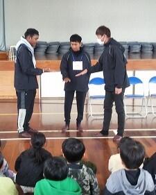 運動委員会が、学級で選ばれた「あいさつ名人」1名を放送で紹介しました。次に、各学年の「マグロンナンバーワン」1名とその推薦者と推薦理由を紹介しました。