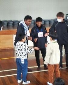 1・2年生が、国際交流をしました。新堀水産様と東水産様のご協力を得て、インドネシアからの実習生4名が来てくださいました。