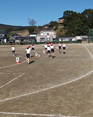 スタートはみんな一緒です。その後、走る(回る)コースが違います。自分でコースを決めて、時間内に何周走れるかに取り組みます。走れるようになったら、さらに距離の長いコースに挑戦します。自分で目標をもって取り組めること、ゲーム性があるので楽しんで取り組めることがメリットです。