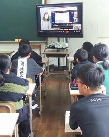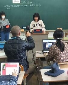 6年生が、油津小学校と外国語のオンライン交流を行いました。「My Dream(私の夢)」をお互いに発表しました。