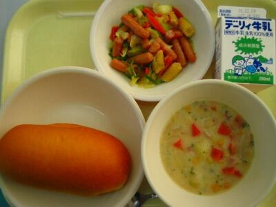 グルメレポート:チャウダーがあまじょっぱくておいしかったです。パンに付けて食べました。(2年3組児童 R)