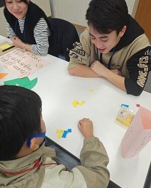 本校からは4年生が2名と1年生(4年生の弟)が1名参加しました。各ブースで大学生のお兄さん・お姉さんと一緒に算数のおもしろさを味わっていました。算数を楽しめたようです。