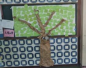 今日(12/2)の昼休みと5校時の間の業間の時間に「人権集会」がありました。人権担当の先生から、人権とは?の説明と、人権冊子「種をまこう」の読み聞かせ、みんなで作った「人権の木」についてと、そこに書かれていた子の紹介がありました。