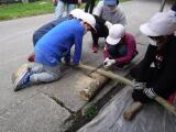 3・4年生が、炭焼き体験学習の1回目を行いました。「潟上ふれあい窯炭焼倶楽部」の皆さまのご指導をいただきながら、木炭の材料となる木を切ったり、窯の中を見せていただいたりと貴重な体験ができました。最後に、各自が持ち寄った、自分が炭にしてみたい物を、炭焼き窯に入れてもらいました。できあがりが楽しみです。