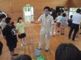 4年生の外国語活動で、外国語活動担当の先生とALTの先生のお手本の後、ペアをつくって、英語でじゃんけんをしました。勝敗によって歩幅を広げたり狭めたりして、手が床に着いたら負けというゲームなどをしました。子ども達は、ゲームを通して外国語に慣れ親しむ活動に、歓声をあげて楽しんでいました。