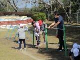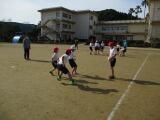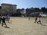 2月下旬ですが、日中の日差しが温かく、運動場の中心では、曜日ごとに決められている学年を中心に、場所を決めて元気いっぱい遊んでいます。それ以外の学年は、鉄棒やおにごっこ、なわとびなど、元気に外を駆け回っていました。