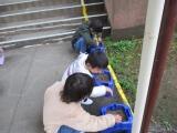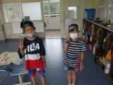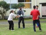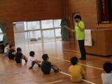 警察署の方に来ていただき、不審者が敷地内に侵入したとの想定で、避難訓練を行いました。警察が来る間、刃物を持った不審者役の警察官を相手に、職員が対応し、その間に子ども達は安全な場所に避難しました。最後に、警察の方から、防犯ブザーの使い方などについて大切なお話をしていただきました。