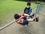 梅雨の合間の昼休み、元気いっぱいに子ども達は運動場を駆け回っていました。学年の垣根を越えて、1年生と6年生がサッカーやボール遊びをしたり、鉄棒の新たな技に挑戦したりと、時間いっぱい楽しんでいました。