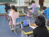 4年生の図工「見てかこう」の学習で、タブレットを活用して、手元においたタブレットに映し出されたお気に入りのアジサイの写真を見ながら、丁寧に絵を描いていました。葉の大きさや形、花の色などの細かなところにも気をつけながら、熱心に描いていました。