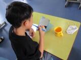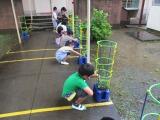 1年生が生活科の学習で、アサガオの観察をしました。葉に触るとざらざらしていたり、つるが伸びて支柱に巻いていたりと、いろいろな発見があり、子ども達は目を輝かせながら観察をしていました。