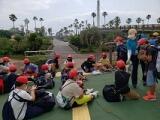 1年生のプールで、ビート板を使って、仰向けに浮く練習をしました。万が一の時には、どのように力を抜けばよいのかや慌てずに浮く体験をしました。最後のプールでは、衣服を着たままで、ペットボトルをどう使えば浮くことができるかを体験する計画です。
