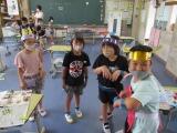 2年生の図工の学習で、「わっかでへんしん」という工作をしました。色画用紙を使って輪を作って飾り付けをして、頭にかぶったり、腕にまいたりして楽しみながら作品を作りました。子ども達は、色や大きさ、飾りなどを工夫してみんなで変身した姿を、笑顔で見せ合いました。