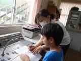 朝の活動の時間に、1~3年生は、飫肥杉積み木「日南キューブ」を、4~6年生は「スキル学習」を行いました。1~3年生は、指定された形を作りあげる活動を行いました。4~6年生は、学力テストの復習「日南チャレンジ」などを行い、学習のまとめを行いました。