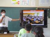 今年度の5・6年生の外国語の時間は、英語専門(他校)の先生とALT(外国語指導助手)の二人で授業を行ってもらいます。子ども達は、デジタル教科書も利用しながら、正しい発音や言い方などを、楽しみながら学習していました。